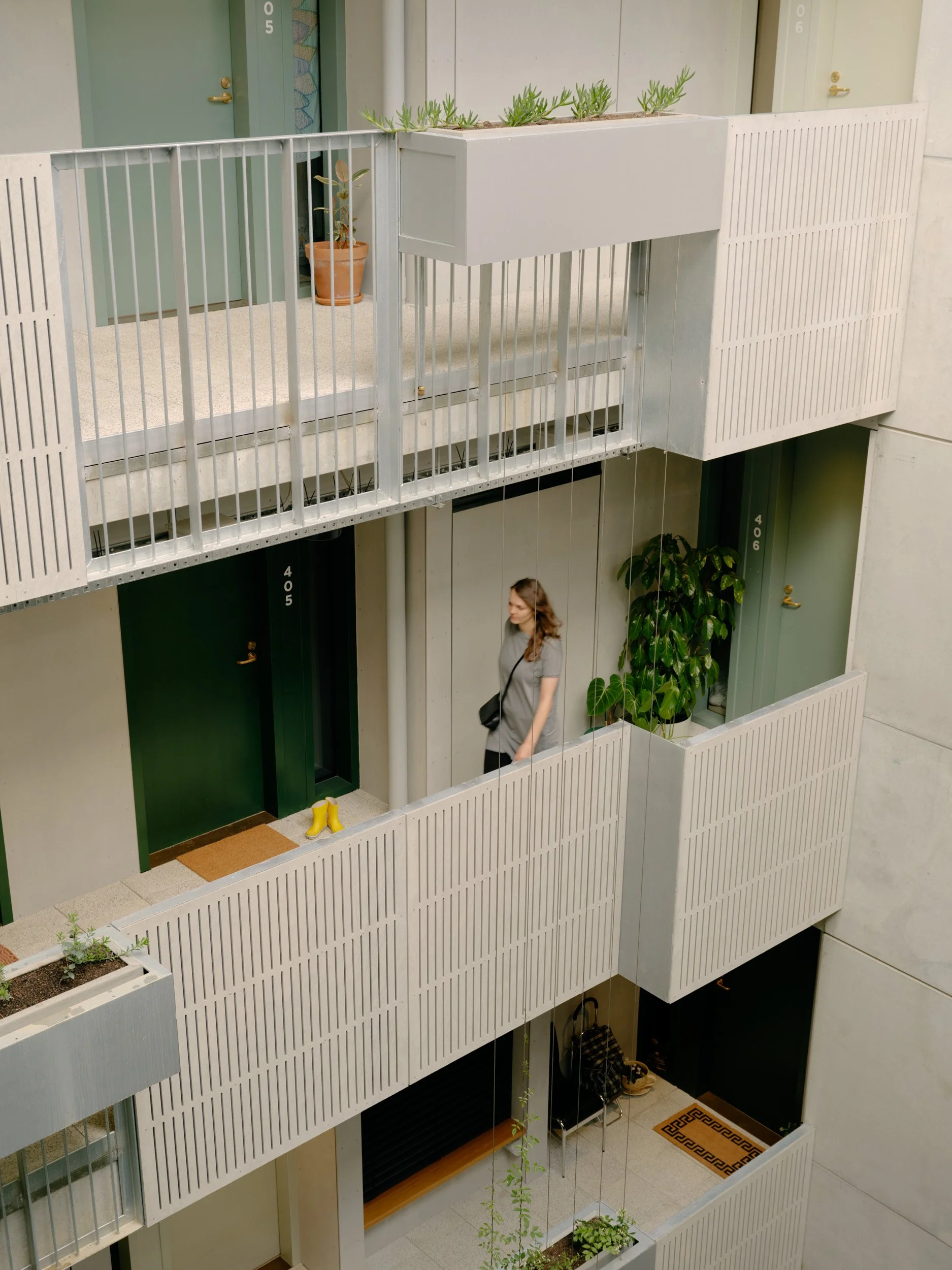A rooftop ‘backyard in the sky’ offers shared dining areas, edible gardens, and a communal laundry. Prioritising sustainability, the project achieves a 7.5-star NatHERS rating, using high-performance glazing and insulation while minimising resource consumption and embodied carbon.
